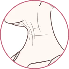 特徴二重あごや「首のたるみ」として目立ち、首全体が老け込んで見える要因になります。